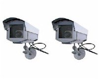 - These are actual surveillance cameras in outdoor housing that have been modified into a "dummy" or fake security cameras.